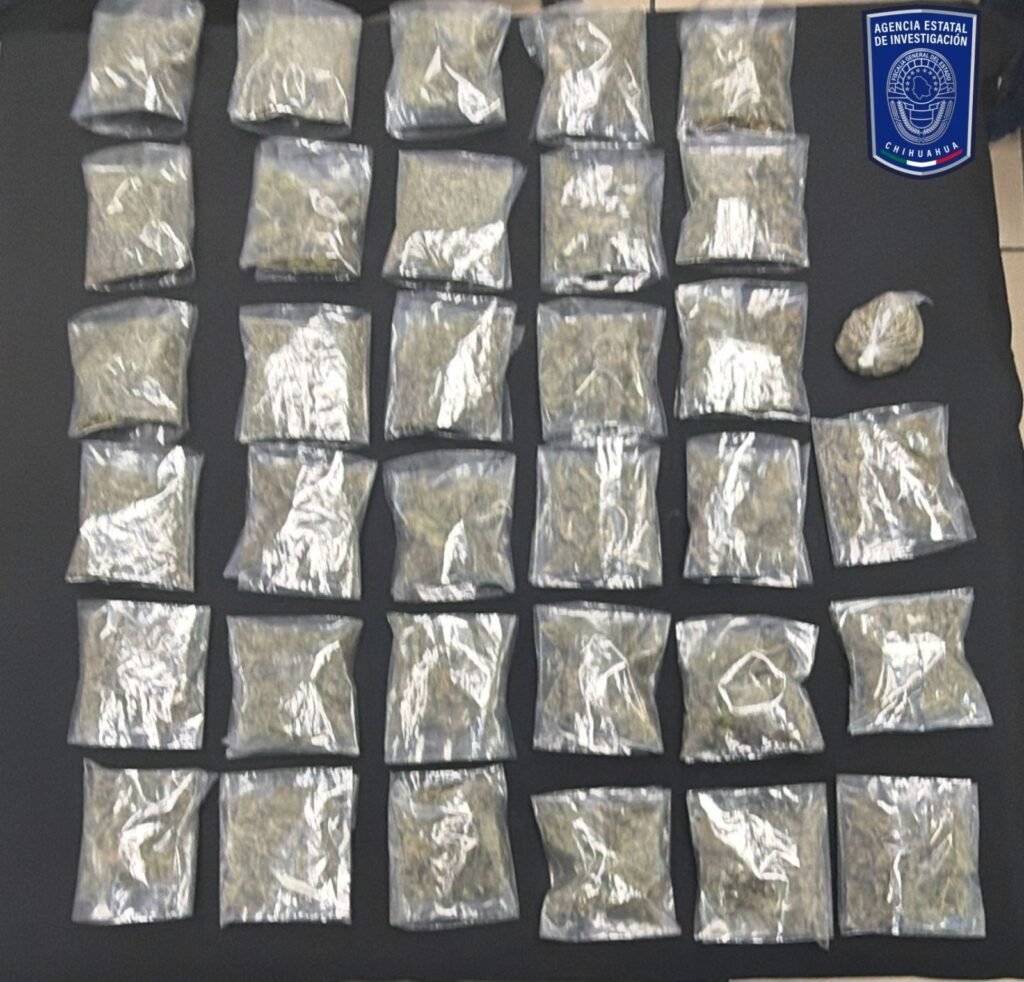 Elementos de la Agencia Estatal de Investigación, adscritos al Centro de Operaciones Estratégicas (COE), de la Fiscalía de Distrito Zona Norte, detuvieron a Alex Gerardo C. C., de 18 años y a Andrea Sofía M. O., de 26 años de edad, por delitos contra la salud, en la colonia Parajes del Sur, en Ciudad Juárez.