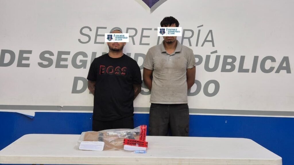 Los detenidos fueron identificados como Gerson B.M y Roberto Carlos H.P, este último con alias “Rover”, quienes presuntamente pertenecen a un grupo delictivo. Ambos fueron puestos a disposición del Ministerio Público para continuar con las investigaciones correspondientes.