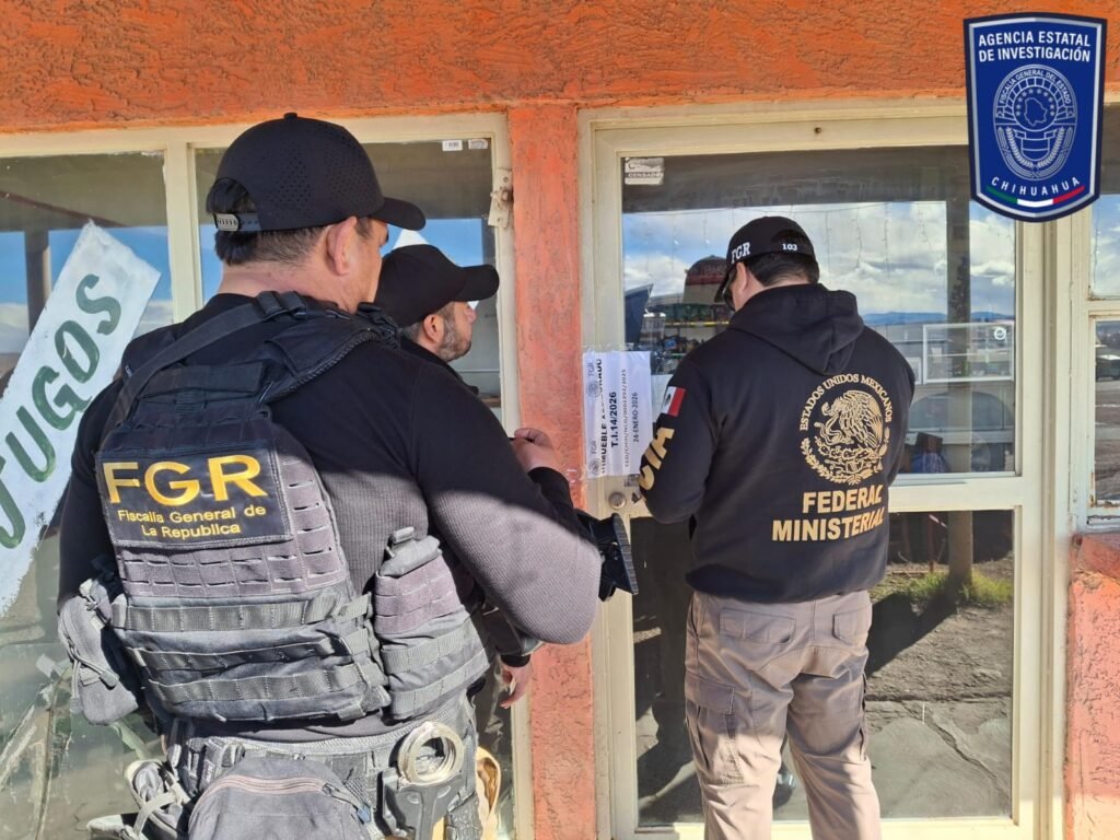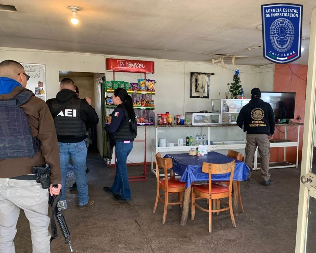 Elementos de la Agencia Estatal de Investigación (AEI), adscritos a la Fiscalía de Distrito Zona Noroeste, colaboraron con la Policía Ministerial Federal en el cumplimiento de una orden de cateo a un restaurante en el poblado de Ricardo Flores Magón, municipio de Buenaventura, Chihuahua.