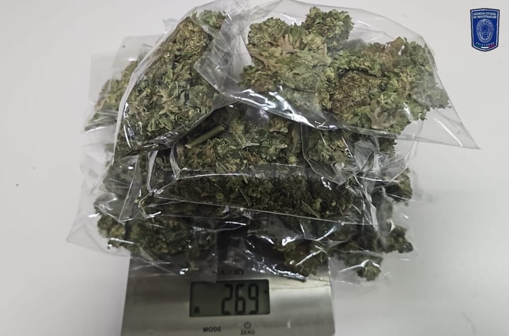 La tercera intervención fue en la calle Fernando Suárez Coello y Ferrocarril de colonia Presidentes, en donde detuvieron a Luis Yahir P. M., de 18 años de edad, entre sus pertenencias traía 18 envoltorios de plástico que contenían 269 gramos de mariguana.
