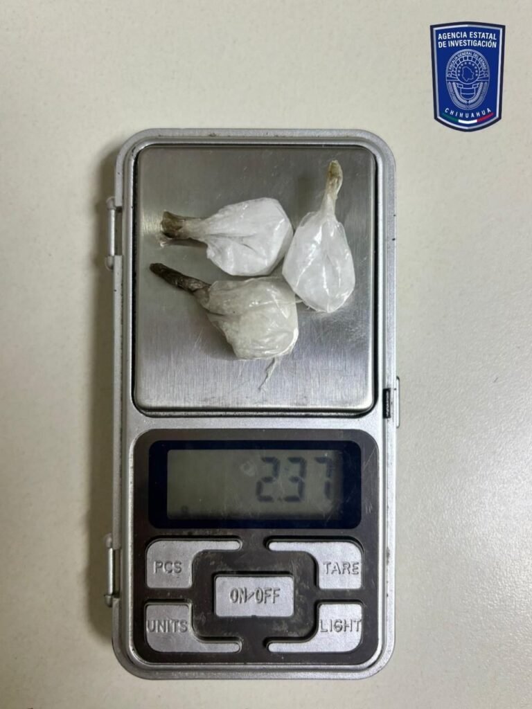 La otra intervención fue realizada en la calle Daniel Andrade de la colonia Tierra y Libertad, sector B, en donde se detuvo a Giovany Gabriel D. J., de 30 años de edad, a quien se le aseguró un envoltorio de plástico con .26 gramos de cocaína en piedra con una etiqueta de un tigre blanco.