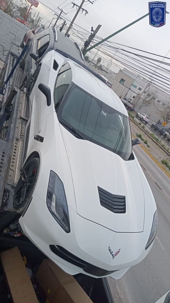 Al revisar el vehículo que poseían, de la marca Chevrolet, línea Corvette, modelo 2017, color blanco con negro, sin matrícula de circulación, se dieron cuenta que cuenta con reporte de robo, interpuesto el 12 de febrero, en California, Estados Unidos.