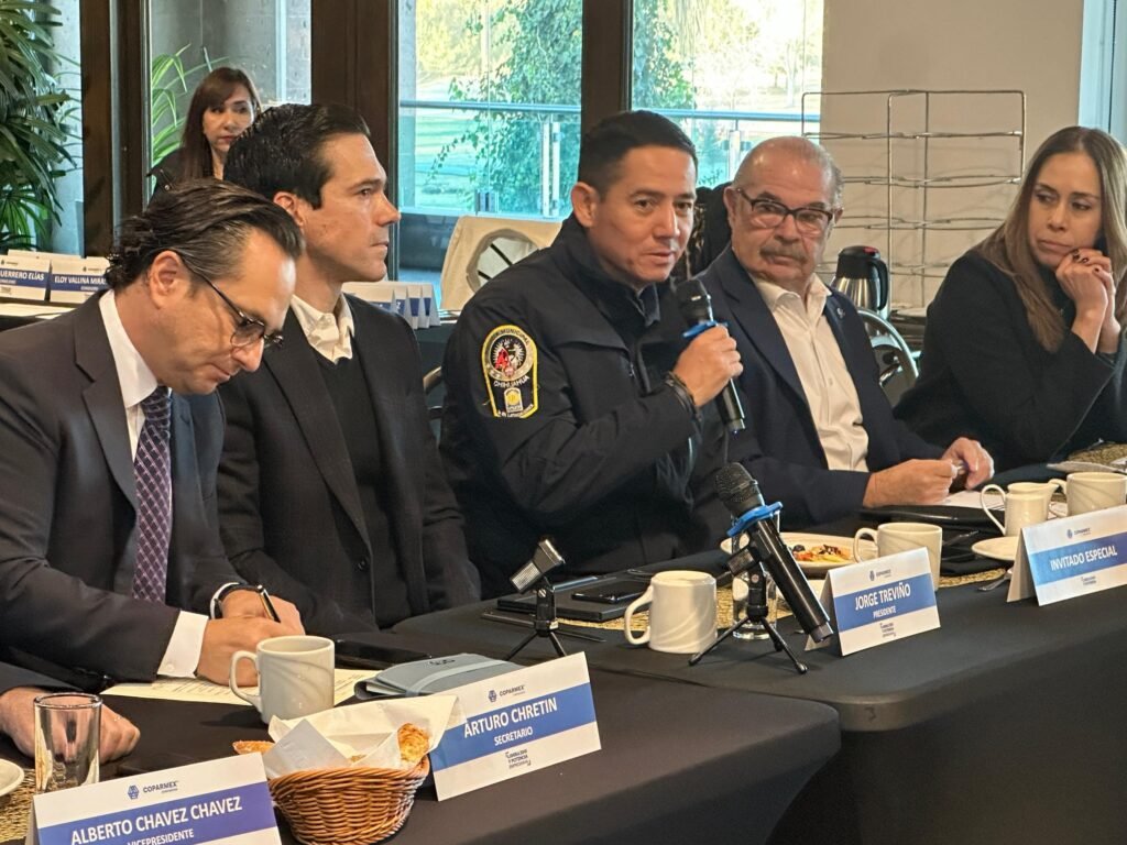 Jorge Treviño Portilla presidente de la Confederación Patronal de la República Mexicana (Coparmex) en conjunto con integrantes de la mesa directiva y socios, sostuvieron una reunión esta mañana con el comisario de la Dirección de Seguridad Pública Municipal (DSPM) el tema prioritario fueron los homicidios que se presentan en la capital.