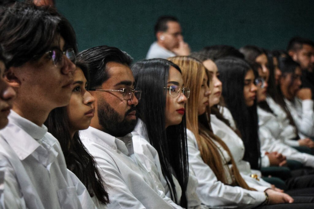 La ceremonia de graduación se realizó en el auditorio del Plantel 8 con la presencia de representantes de las instituciones aliadas, así como madres y padres de familia, quienes acompañaron a los graduandos en este logro académico.