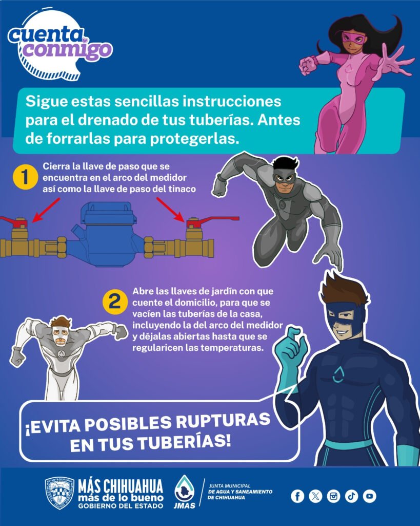 Ante el pronóstico de bajas temperaturas, la Junta Municipal de Agua y Saneamiento (JMAS) de Chihuahua emitió recomendaciones para proteger las tuberías y prevenir daños por congelamiento.
