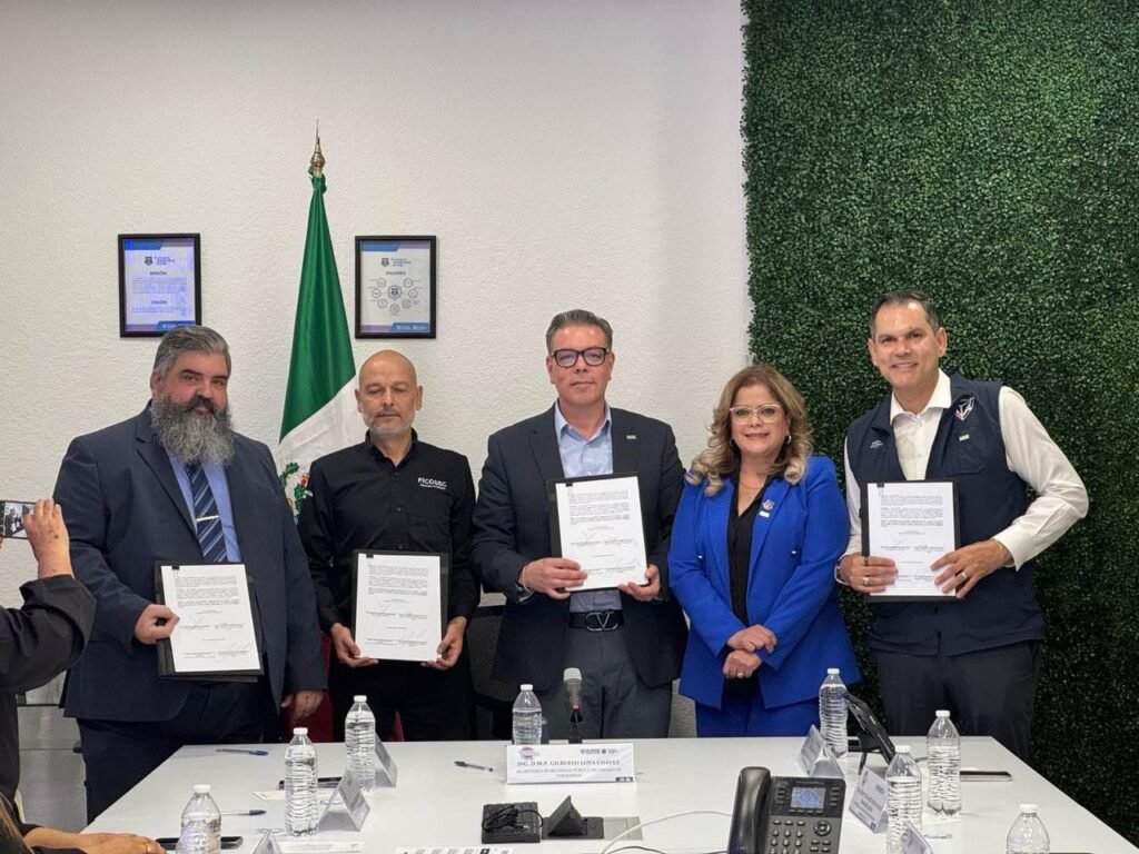 Durante la firma del convenio estuvieron presentes, Raúl de León, presidente de FICOSEC Juárez, Jean Paul Aguilera, director ejecutivo de FICOSEC Juárez, Alejandro Brugués Rodríguez, director del Colegio de la Frontera Norte.