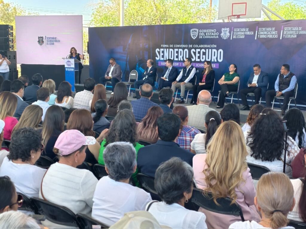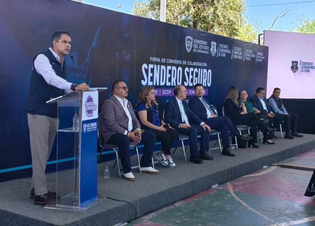 En representación de la Gobernadora del Estado, Maru Campos, el Secretario de Seguridad Pública del Estado, Gilberto Loya, encabezó la firma del convenio del programa Sendero Seguro, el cual se realizó entre el Gobierno del Estado, a través de la SSPE, la Secretaría de Desarrollo Urbano y Ecología, el Instituto Chihuahuense de las Mujeres y la Secretaría de Comunicaciones y Obras Públicas.