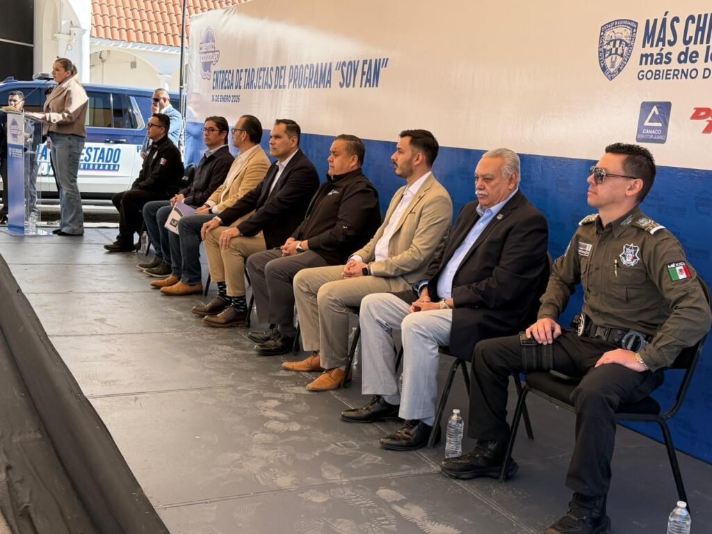 El secretario de Seguridad Pública del Estado, Gilberto Loya Chávez, encabezó la entrega de tarjetas “Soy Fan”, una herramienta impulsada para brindar beneficios directos al personal policial que opera en Ciudad Juárez y la zona norte del estado, a través de descuentos y promociones en diversos comercios.
