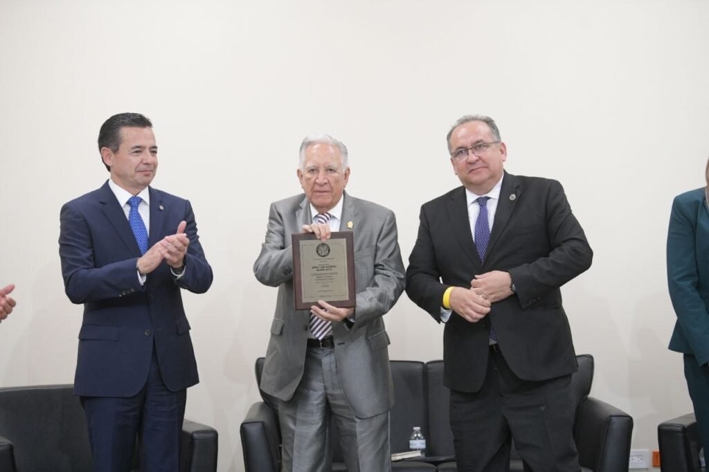 Durante el evento, el rector de la UACJ, el Dr. Daniel Alberto Constandse Cortez, destacó el orgullo que representa para la comunidad universitaria reconocer una trayectoria como la del maestro Rivera Soto, subrayando que su obra ofrece una mirada cercana y ética del mundo legal.