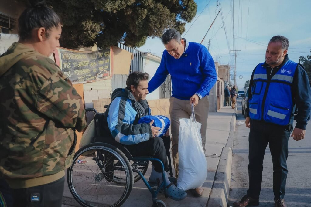 H. Ciudad de Chihuahua, Chih., a 27 de enero de 2026.- El alcalde Marco Bonilla recorrió la tarde de este martes la colonia Tarahumara para hacer entrega de cobijas y despensas para las familias de la etnia ralámuli más vulnerables que habitan en la zona.