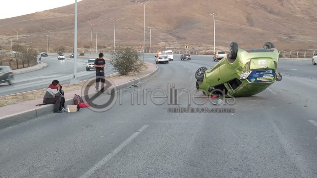 La tarde de este jueves, una familia que viajaba a bordo de un vehículo Chevrolet Spark, color verde, sufrió un aparatoso accidente cuando circulaba por el periférico R. Almada en sentido de este a oeste.