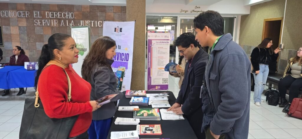 Con el objetivo de estrechar lazos entre la academia y el servicio público en favor de la justicia, la titular de la Comisión Ejecutiva de Atención a Víctimas de la Fiscalía General del Estado, Mtra. Norma Ledezma Ortega, participó en la Feria de Servicio Social y Prácticas Profesionales organizada por la Facultad de Derecho de la Universidad Autónoma de Chihuahua (UACH).
