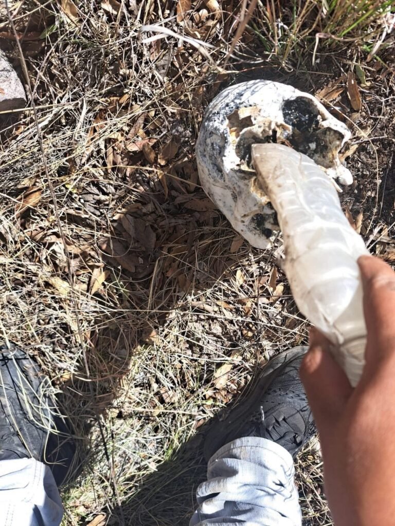 Las imágenes de este cráneo humano fue difundido en redes sociales la mañana de este sábado. El hallazgo sobre la carretera Parral-Guadalupe y Calvo.