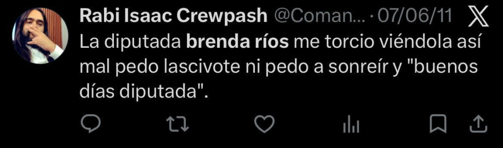 “Congruencia, y realmente si la diputada quiere proteger a las mujeres, que lo demuestre. Hay muchos mensajes con odio político, misoginia, violencia y con la peor de las vulgaridades, no solamente contra mujeres, sino contra niños, ósea es un depredador”.