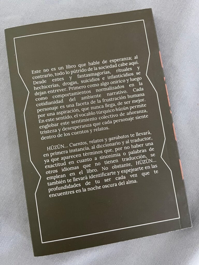 ¿Qué es Hüzün? —Implica este sentimiento como menciono, de profunda pérdida, de profunda tristeza de no saber qué hacer con tú vida, porque momentos antes eras otomano y ahora eres un turco. En este sentido todos los personajes de Hüzün, cuentos, relatos y garabatos, sienten esto, sienten esta profunda pérdida identitaria, porque a pesar de que no son los mismos personajes y a pesar de que no están viviendo las mismas situaciones, están sintiendo ese vacío dentro de sí. Hüzün, trata distintos temas, desde ocultismo, rituales, brujería, feminicidios, infanticidios, drogadicción y siempre, cada uno de los personajes, sienten esa profunda pérdida, aunque tengan todo o no tengan nada, por lo que este libro nos habla, de este mundo que no tiene esperanza o que ha perdido la esperanza.