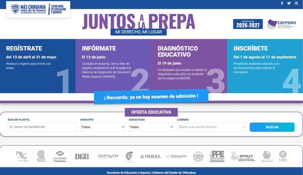 La Secretaría de Educación y Deporte (SEyD) informó que a partir del próximo lunes inicia el Registro Único en Línea para aspirantes a planteles públicos de Educación Media Superior, ciclo escolar 2026-2027, como parte de la estrategia “Juntos a la Prepa. Mi Derecho, Mi Lugar”.