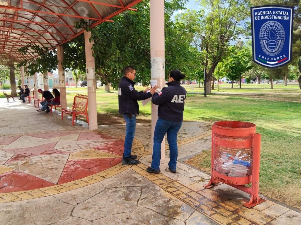Las diligencias consistieron en trabajos de investigación, entrevistas y pega de pesquisas, las cuales se realizaron en instituciones gubernamentales, centros comerciales, domicilios, parques y plazas públicas.