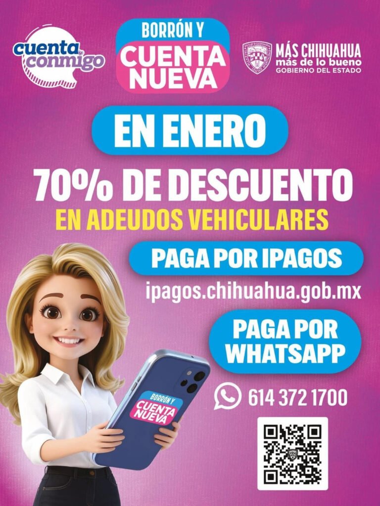 El Gobierno del Estado de Chihuahua invita a la población a aprovechar el último mes de vigencia del programa Borrón y Cuenta Nueva, que ofrece descuentos de hasta del 70 por ciento en diversos adeudos estatales.