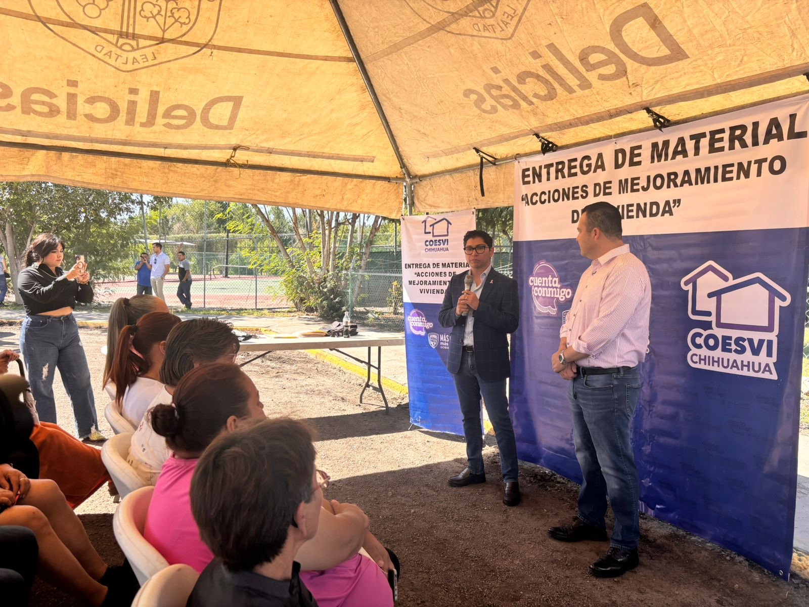La entrega fue encabezada por el director de Atención y Programas Sociales de Coesvi, Jesús Ricardo Huerta Ayala y el alcalde de Delicias, Jesús Valenciano García, quienes reiteraron el compromiso de trabajar de manera conjunta en favor de los hogares del municipio.