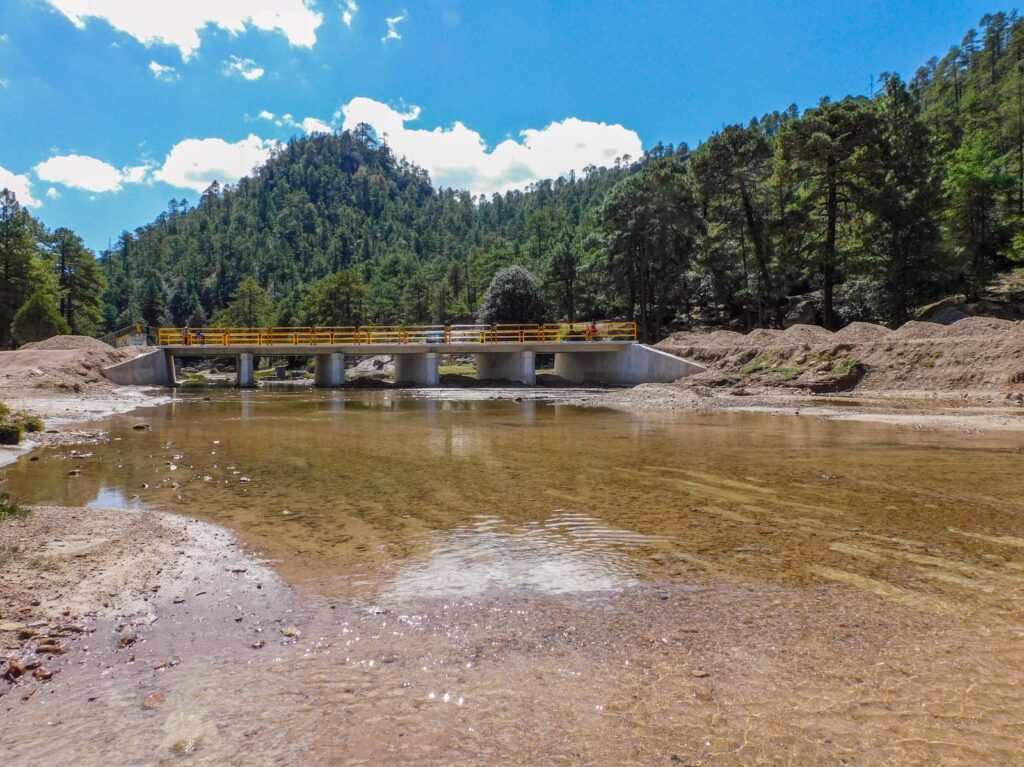 El Gobierno del Estado, a través de la Secretaría de Turismo informa que las obras de construcción de los dos puentes vehiculares que darán acceso a la Cascada de Cusárare, registran un 65 por ciento de avance y se prevé su conclusión antes de finalizar el año