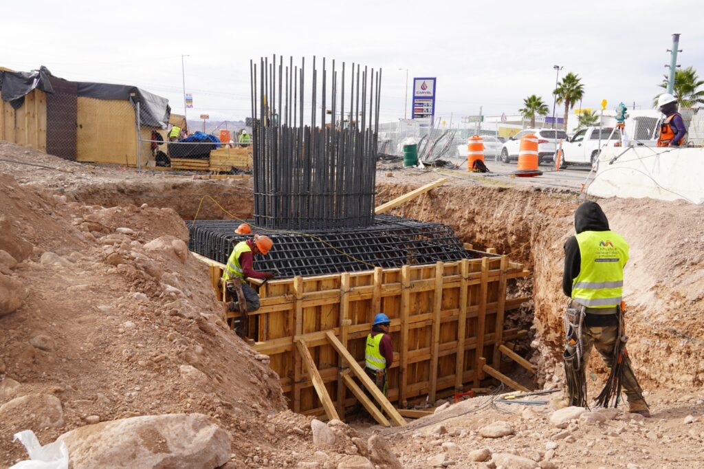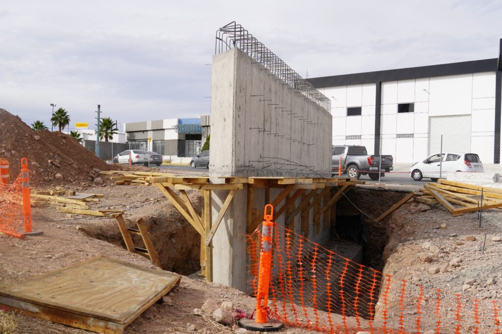 Los trabajos avanzan en tiempo y forma con la reubicación de líneas de alcantarillado y de conducción de agua potable. De igual manera, continúan las excavaciones para el desplante de zapatas, así como el habilitado y la colocación de acero para columnas y el vaciado de concreto en dados.
