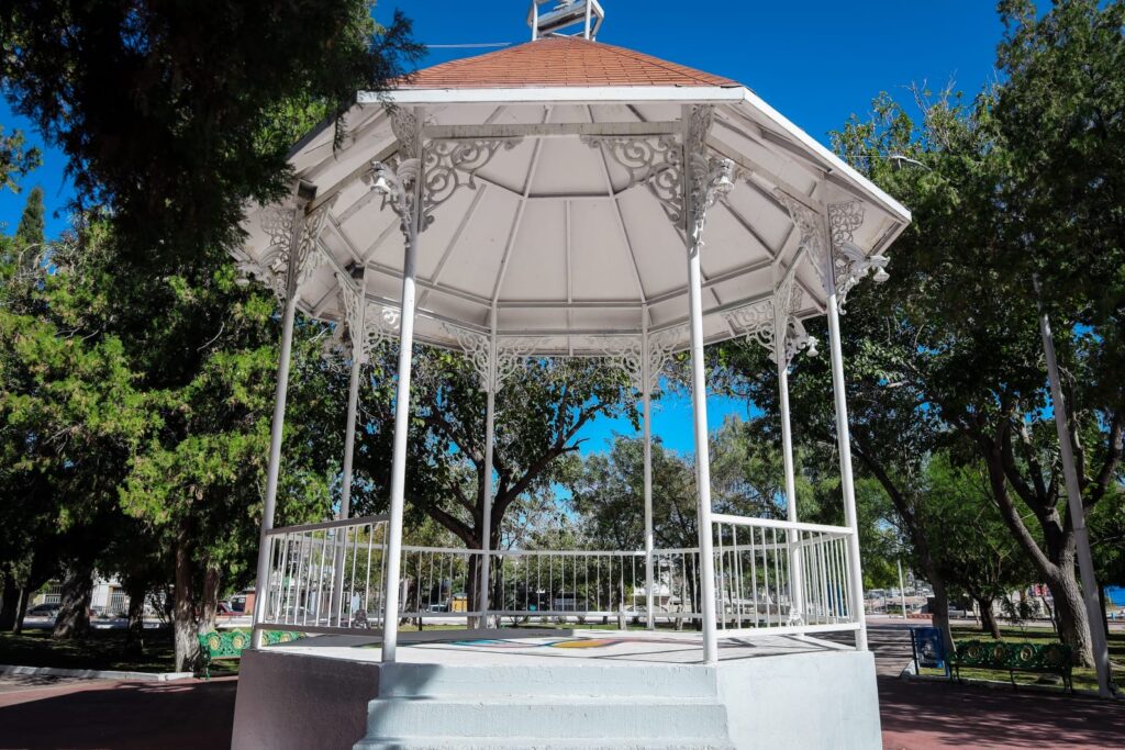 A dicho espacio se le realiza mantenimiento constante, en esta ocasión el Gobierno Municipal retocó la pintura de las bancas y del kiosco, se realizó limpieza general al área, recorte del pasto, mantenimiento integral a las áreas de juego para niñas y niños, entre otras acciones.