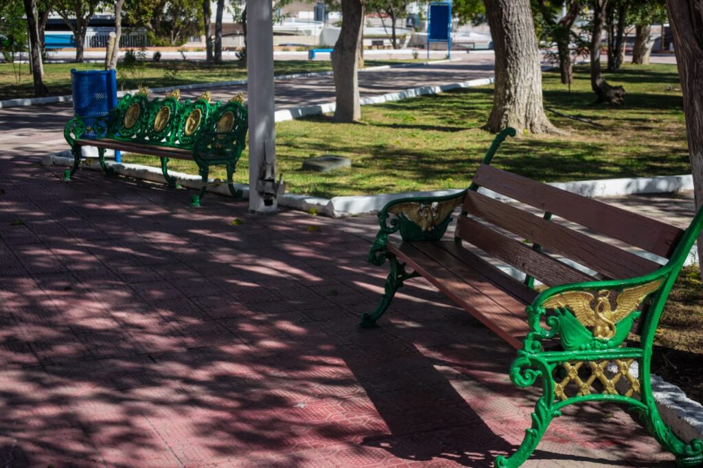 Bancas pintadas y áreas limpias; supervisa Marco Bonilla mantenimiento del Parque Santo Niño