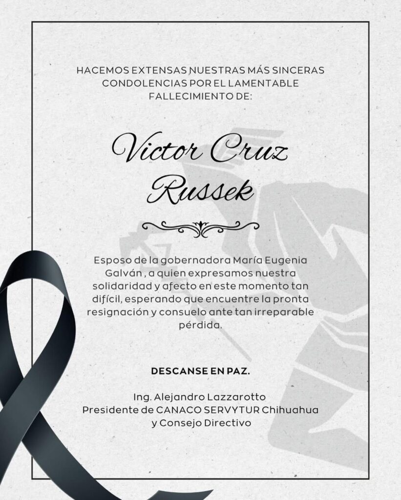 Cabe destacar que el empresario Víctor Cruz Russek falleció hace unas horas, a consecuencia de una complicación de salud.