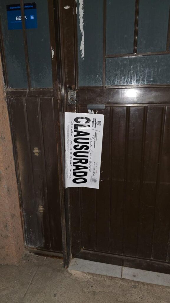 • Salón de eventos “ Salón de Eventos y Terraza Colibrí” por operar sin permiso