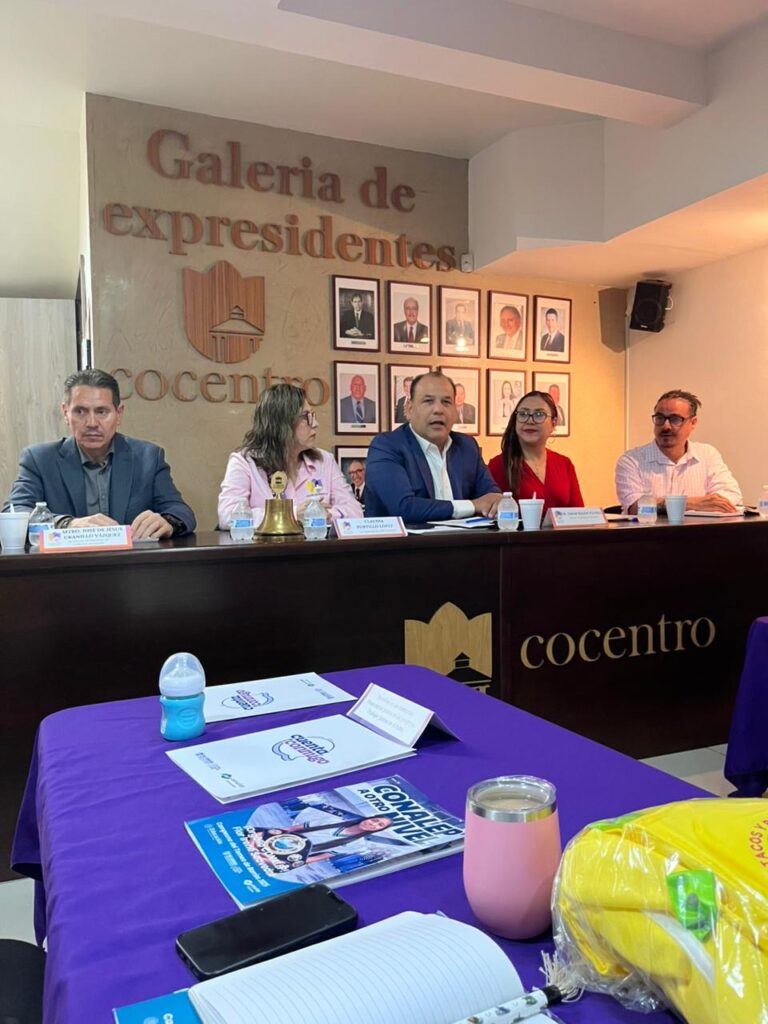 Está mañana la Asociación de Comerciantes del Centro (Cocentro) realizó su sesión mensual encabezada por su presidenta Claudia Portillo, quien recibió como invitados al Secretario de Hacienda, José de Jesús Granillo y al director de Conalep Omar Bazán.
