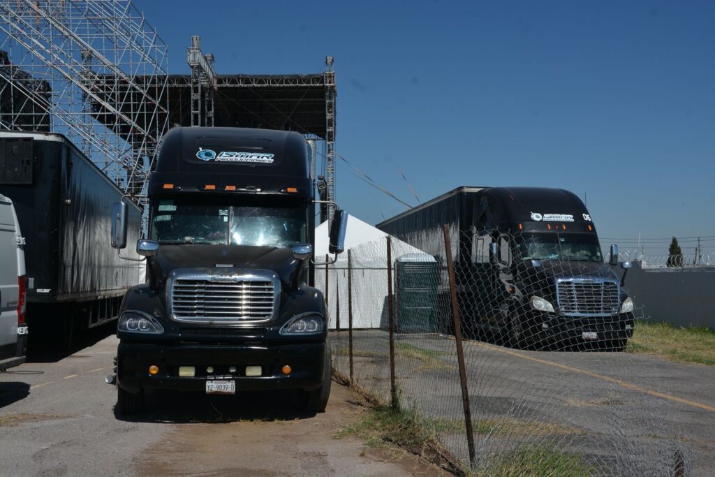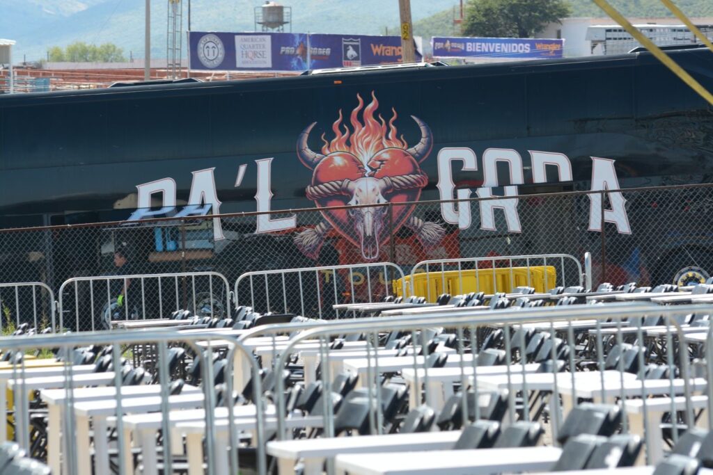 Con todo y camiones del equipo técnico y musical arribaron a las instalaciones de la Unión Ganadera Regional de Chihuahua (UGRCH) ubicada en el Kilomtro 8.5 de la carretera a Cuauhtémoc.
