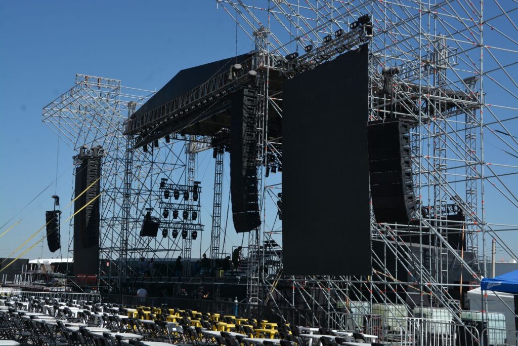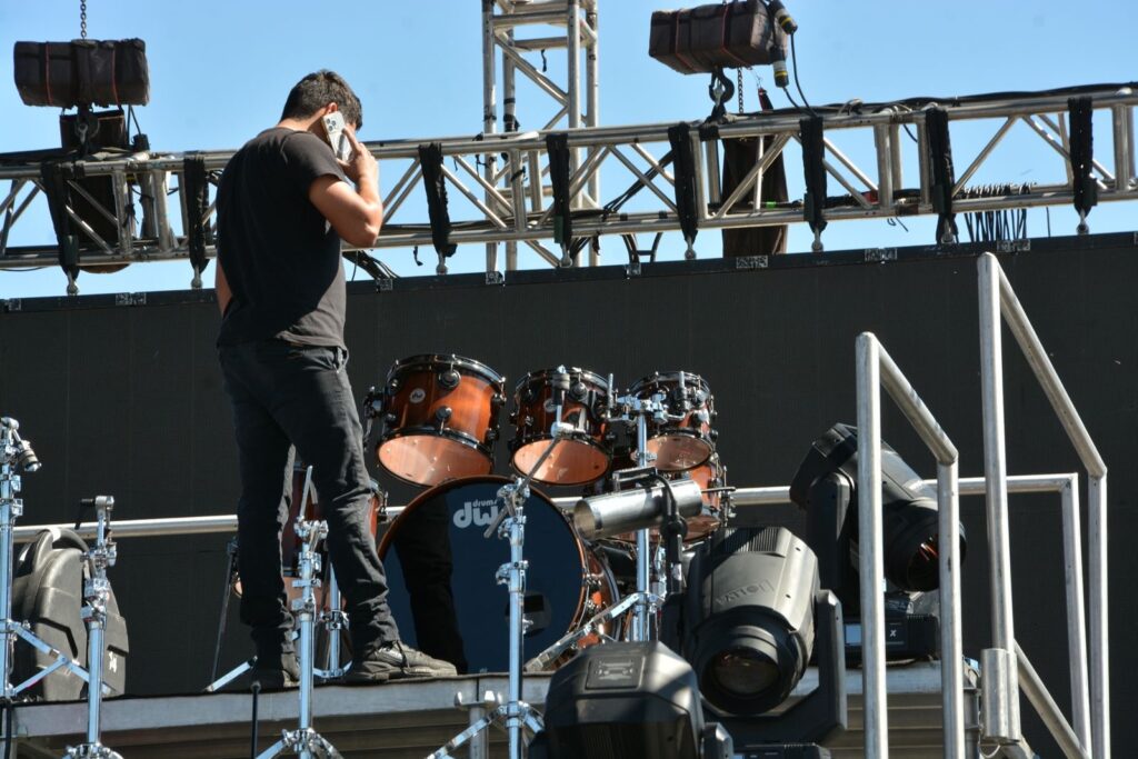 Hoy por la noche se presentará Christian Nodal en el Centro de Espectáculos de ExpoGan 2025, comienzan a instalar equipo para el concierto.