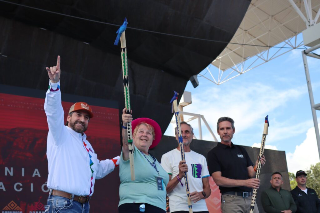 Durante el acto de cierre, Gómez Gallegos entregó bastones de mando rarámuri a los fundadores del circuito y al comité organizador.