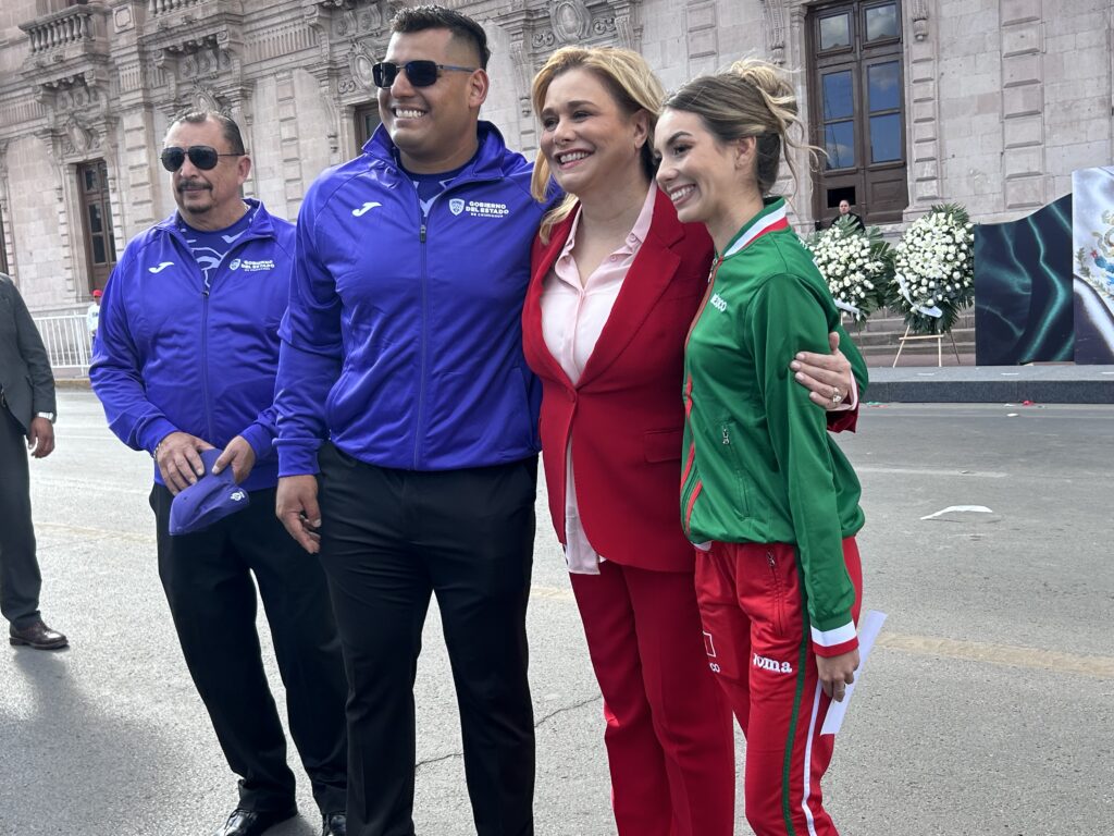 En punto de las 11:00 horas, las y los ganadores del Premio Estatal del Deporte, que minutos antes recibieron su galardón, dieron inicio al desfile encendiendo una antorcha.