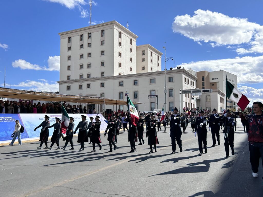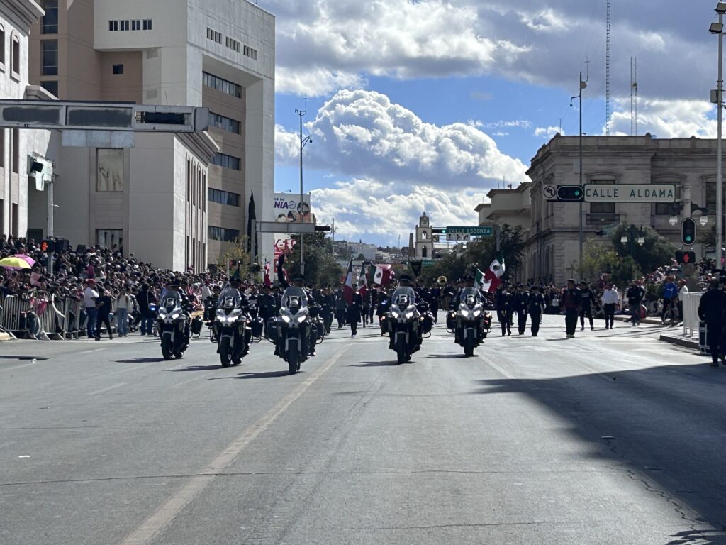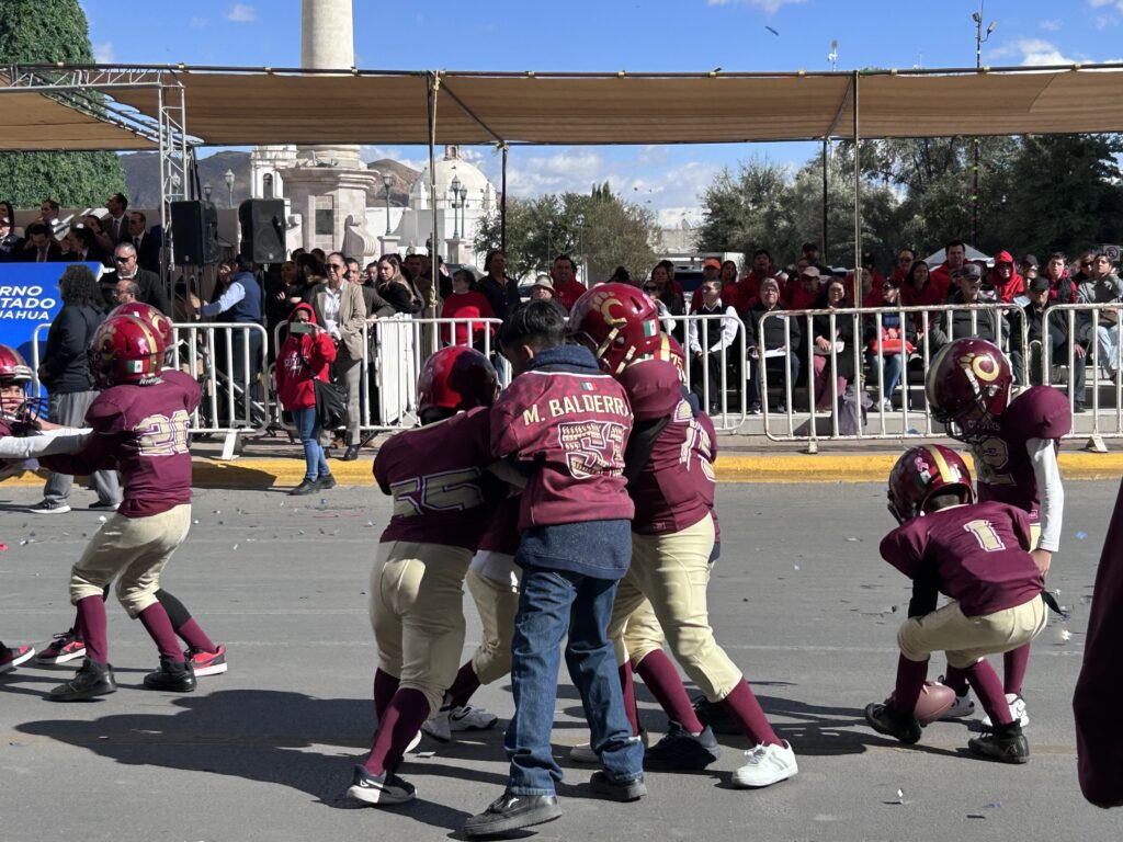 La gobernadora María Eugenia Campos Galván encabezó el inicio del desfile cívico por el 115 aniversario de la Revolución Mexicana.