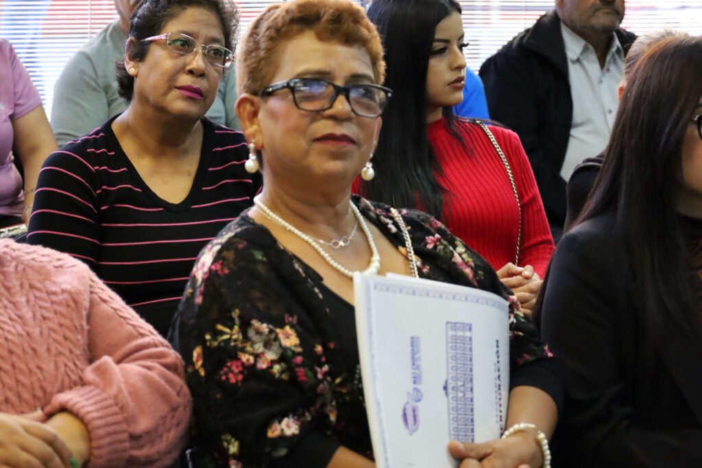 Raquel Ibarra Carlos, habitante del fraccionamiento José María Ponce de León y beneficiaria del programa, expresó su agradecimiento por las escrituras de su casa luego de varios años de espera, y destacó importancia de contar con certeza jurídica sobre su patrimonio familiar.