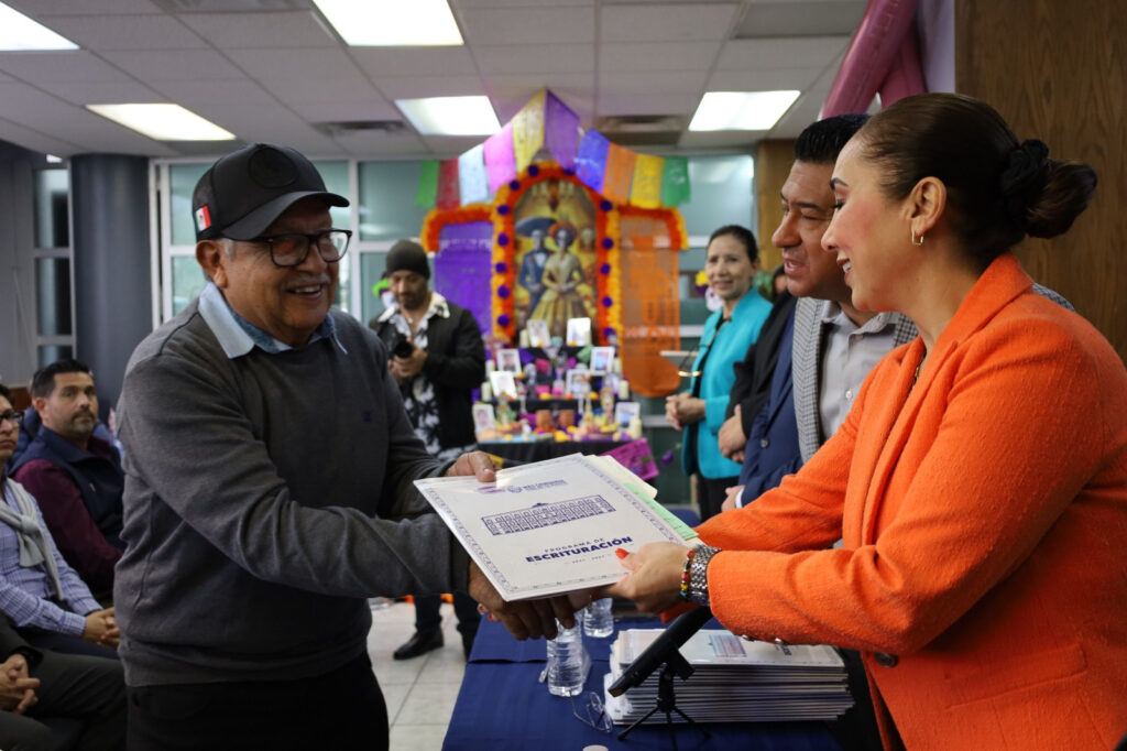 Esta entrega se suma a los 50 documentos otorgados en mayo de 2025, en beneficio de familias de Chihuahua y Aquiles Serdán, para un total de 90 familias beneficiadas con el esquema “Juntos Escrituramos tu Vivienda”, quienes ahora tienen certeza jurídica de su propiedad.