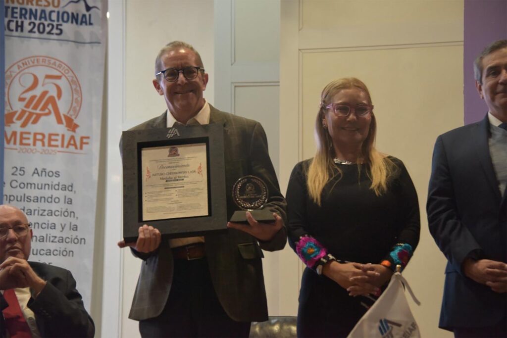 En el marco del Congreso Internacional UACH 2025 de la Asociación Mexicana de Responsables de la Información Administrativa y Financiera en las Instituciones de Educación Superior A.C., la Universidad Autónoma de Chihuahua fue sede de la entrega de la «Medalla al Mérito AMEREIAF 2025», reconocimiento otorgado al Dr. Arturo Cherbowski Lask por su destacada labor en favor del fortalecimiento institucional y académico de las universidades del país.