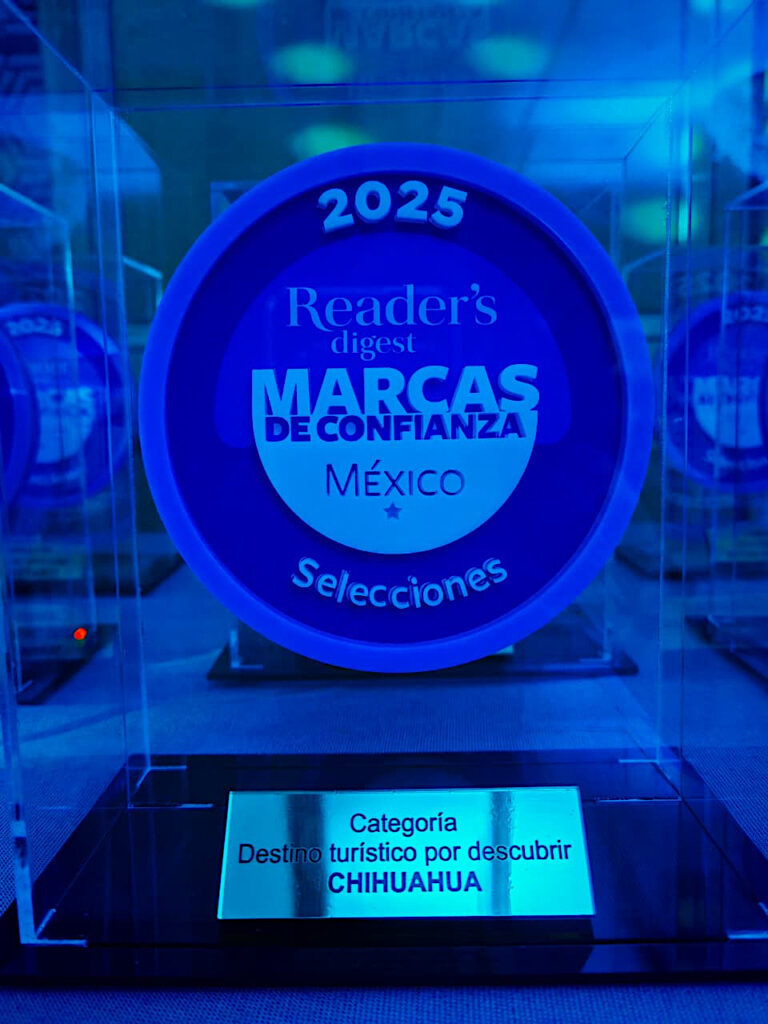 El Gobierno del Estado y el Fideicomiso de Promoción Turística ¡Ah, Chihuahua! fueron galardonados con el reconocimiento “Destino Turístico por Descubrir” por la revista Selecciones de Reader’s Digest, en el marco del evento Marcas de Confianza México 2025.