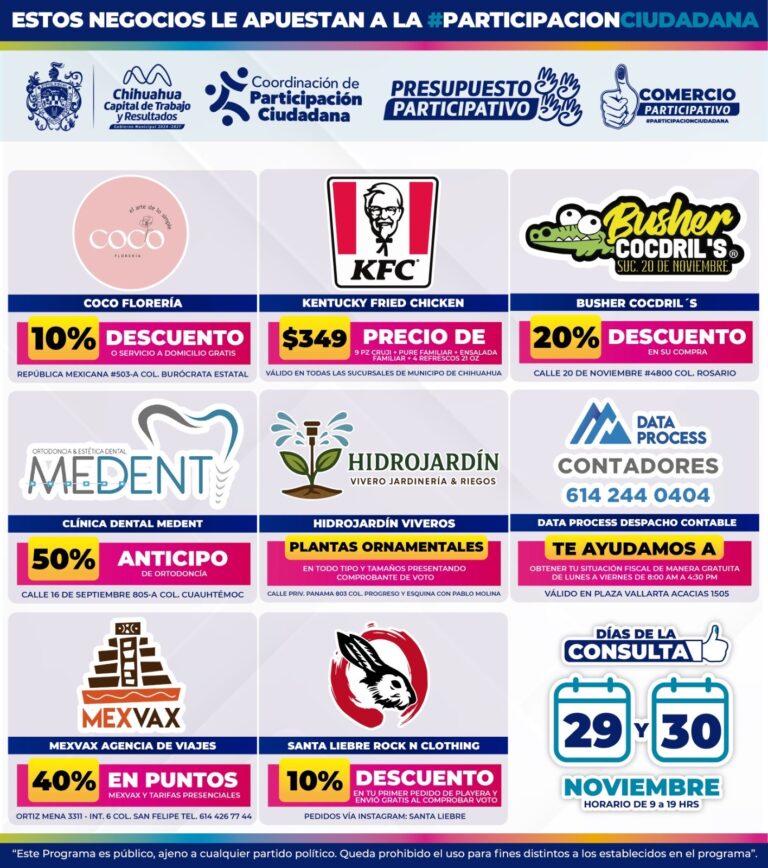 El Gobierno Municipal de Chihuahua invita a todas y todos los chihuahuenses a participar hoy sábado 29 y domingo 30 de noviembre en la votación del Presupuesto Participativo 2026, donde podrán elegir los proyectos que desean para sus colonias. La ciudadanía podrá emitir su voto directamente en las urnas de su distrito o a través de la aplicación móvil oficial, disponible para dispositivos Android.
