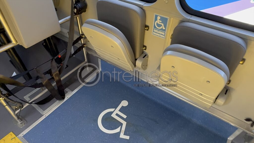 Asimismo, piso pododáctil en terminales y camiones, botones y tubos con lenguaje braille para usuarios con discapacidad visual.