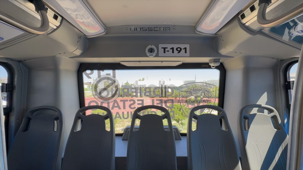 Cada unidad cuenta con cámaras de vigilancia en tiempo real, con un monitor para el conductor y con transmisión al centro de mando; puertas centrales, tableros electrónicos de ruta, certificación ecológica Euro V.
