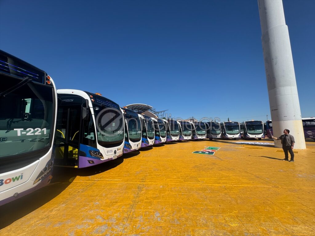 La gobernadora María Eugenia Campos Galván encabezó el inicio de operaciones de los 40 nuevos camiones de la ruta troncal Bowí que reemplazarán a las unidades que ya expiraron en año-modelo o que presentan fallas mecánicas.