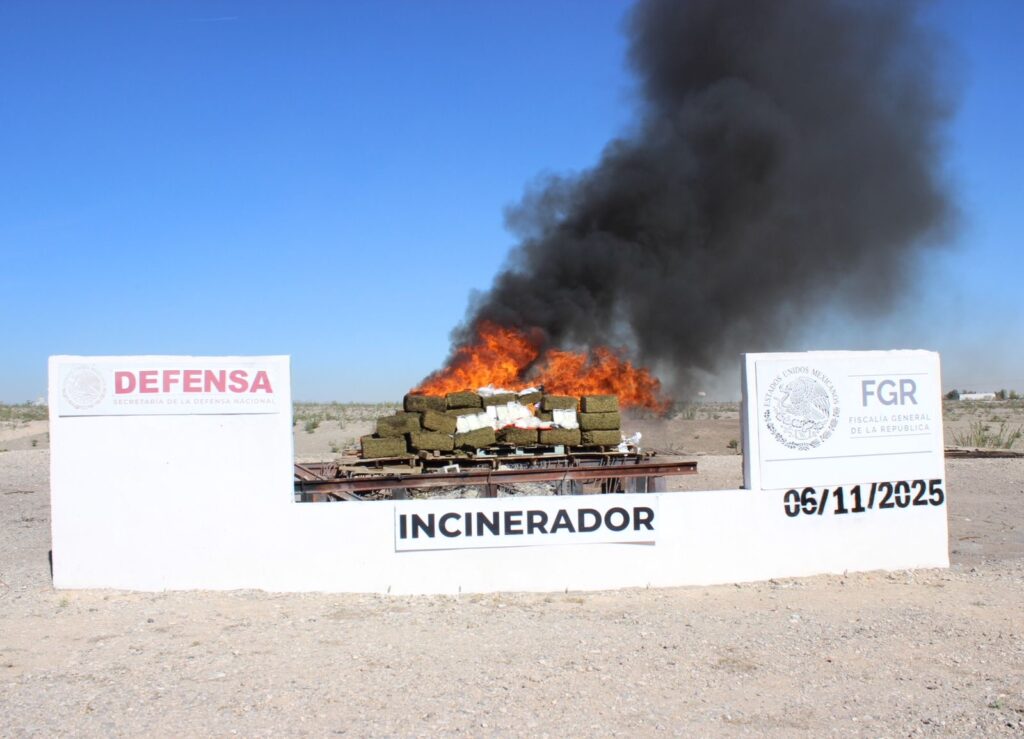 La Fiscalía General de la República (FGR) a través de su Fiscalía Especializada de Control Regional (FECOR) en el estado de Chihuahua, llevó a cabo dos actos de incineración, en los que se destruyeron 884 kilos 848 gramos 513 miligramos de narcóticos, tres mil 326 unidades de psicotrópicos, 111 litros 110 mililitros que contiene metanfetamina y sustancia negativa y cinco objetos de delito, en coordinación con la Secretaría de la Defensa Nacional (Defensa).