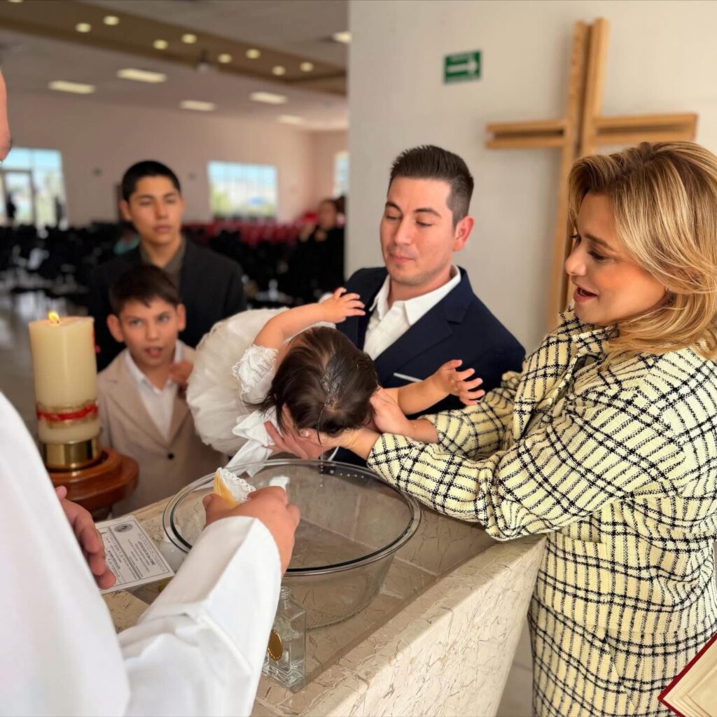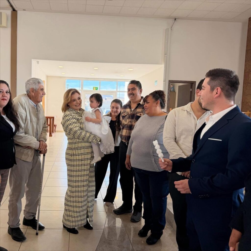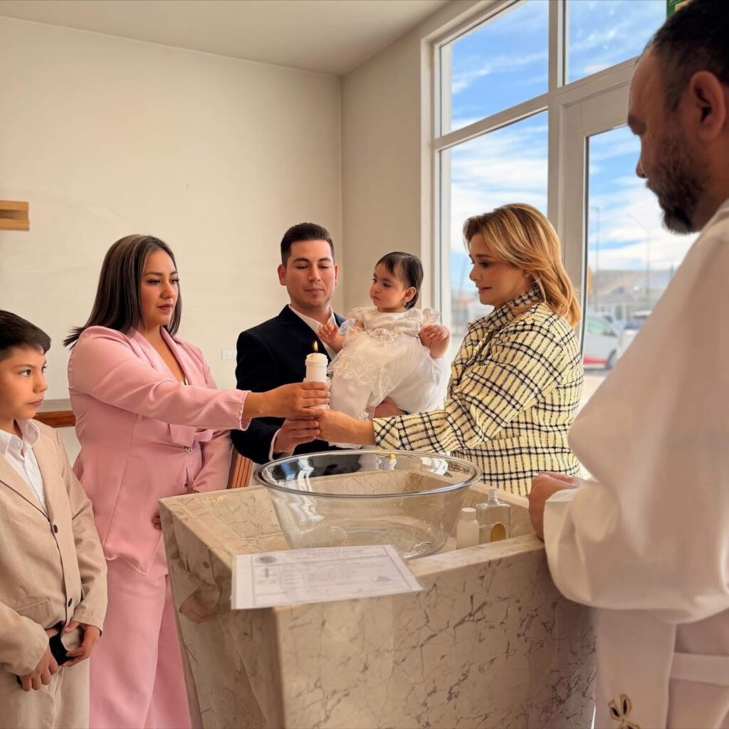 La gobernadora de Chihuahua, María Eugenia Campos Galván, dio a conocer este viernes que fungió como madrina en el bautizo de Mía Romina, hija de Nubia, enfermera de don Víctor Cruz.