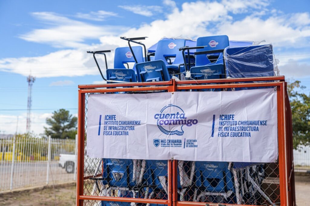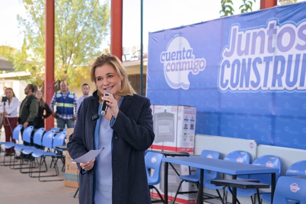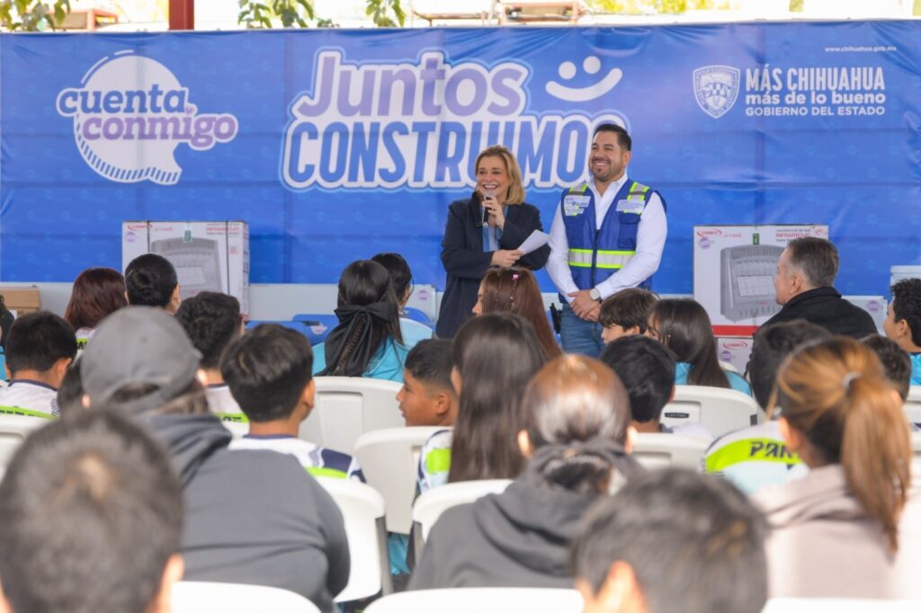 La gobernadora Maru Campos encabezó la entrega de equipo y mobiliario para 36 escuelas de educación Básica de la región noroeste del estado, que significó una inversión superior a los 2 millones 800 mil pesos, como parte del programa Juntos Construimos.