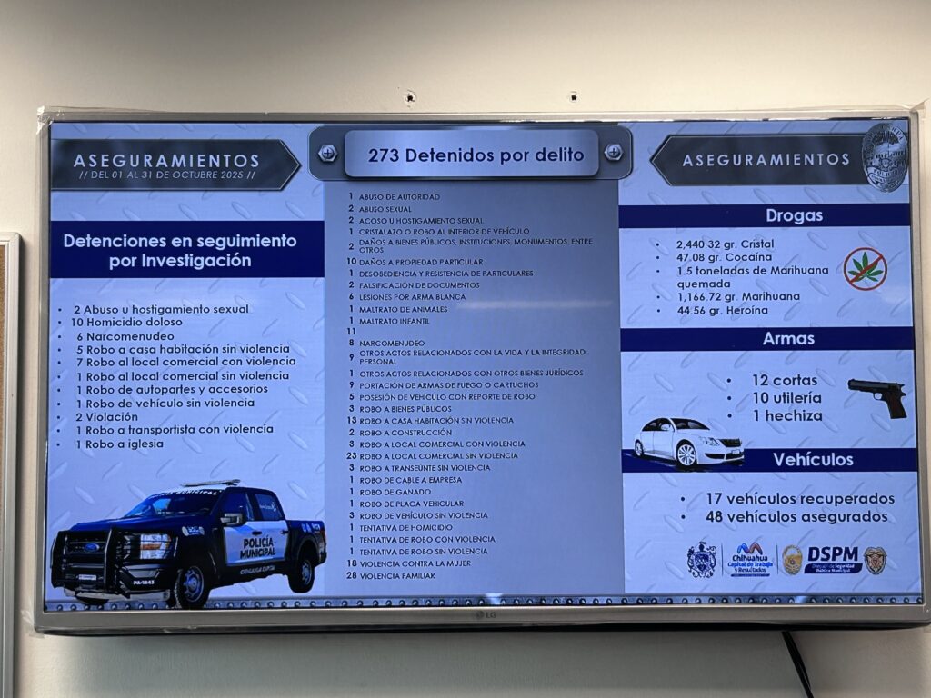 Cabe recordar que la policía preventiva a mitad de mes siempre cuenta con datos con un casi empate entre detenciones por narcomenudeo y violencia doméstica, pero fue octubre cuando cierra con una diferencia de 28 a 8, es decir, solo ocho detenciones por narcomenudeo.