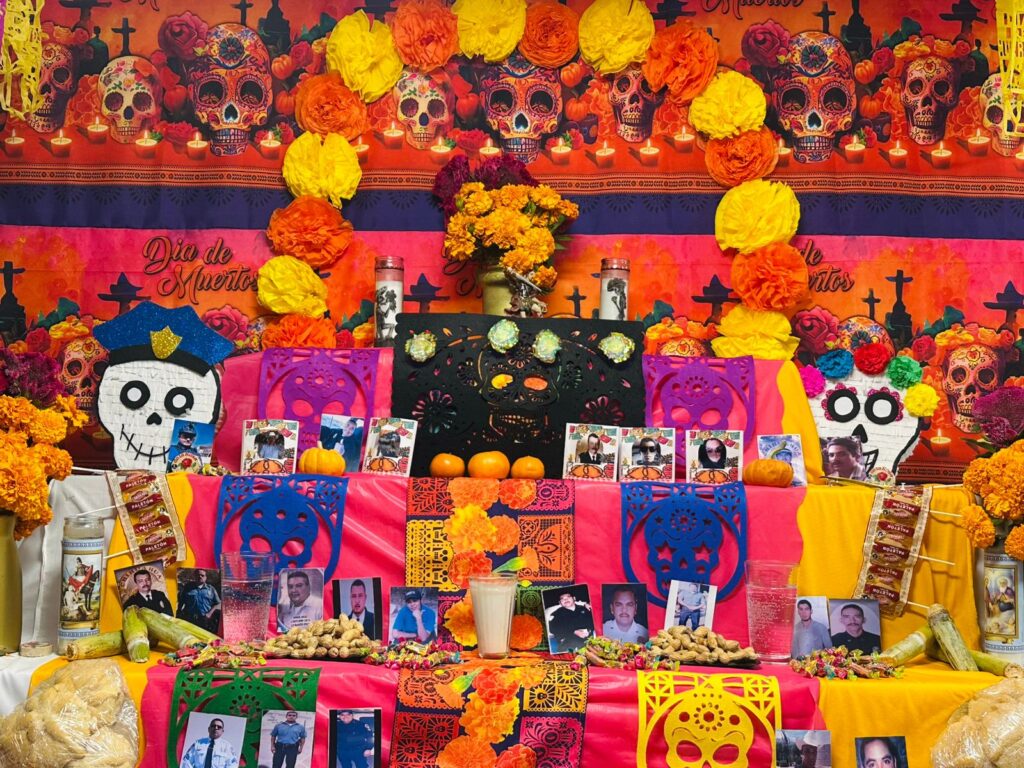Al interior de la Comandancia Norte, recuerdan a las y los compañeros con diferentes fotografías y ofrendas, sus alimentos y bebidas favoritas, para su camino al descanso eterno tal y como