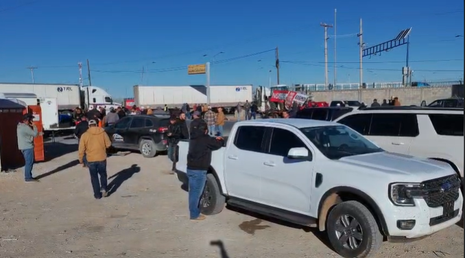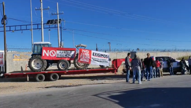 Productores agrícolas de la región de Galeana se manifestaron de manera pacífica en el cruce fronterizo Zaragoza, en Ciudad Juárez en respaldo a sus compañeros que permanecen en Ciudad de México, en espera de que se vote la reforma a la Ley General de Aguas.