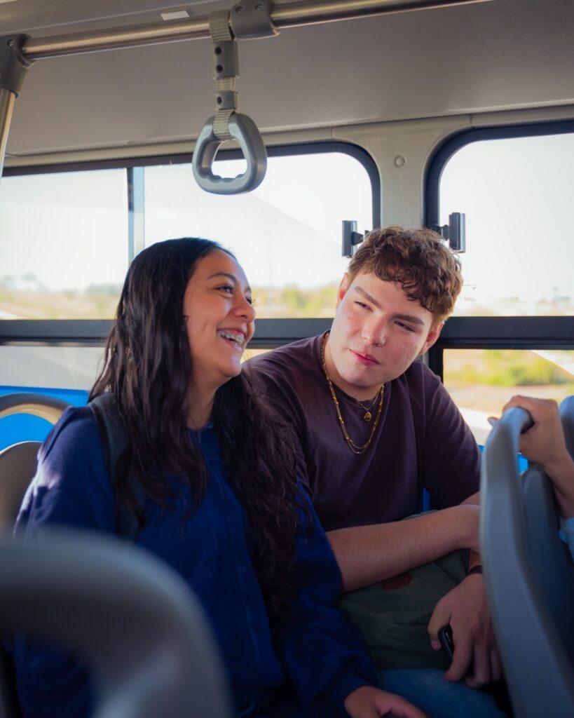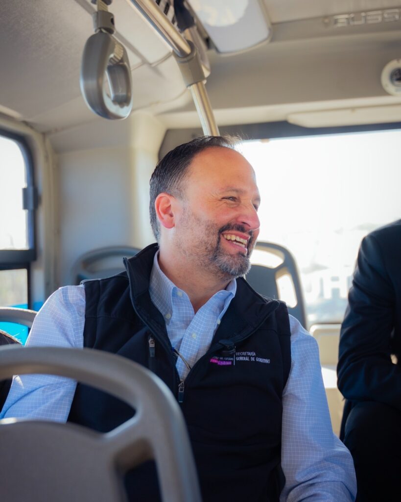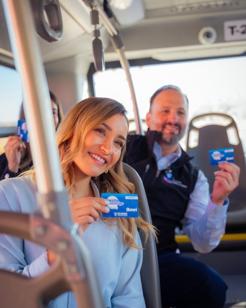La directora general del Instituto Chihuahuense de la Juventud, Fernanda Jazmín Martínez Quintero y el secretario General de Gobierno, Santiago De la Peña Grajeda, junto a estudiantes universitarios realizaron un recorrido en las nuevas unidades del transporte público Bowí.